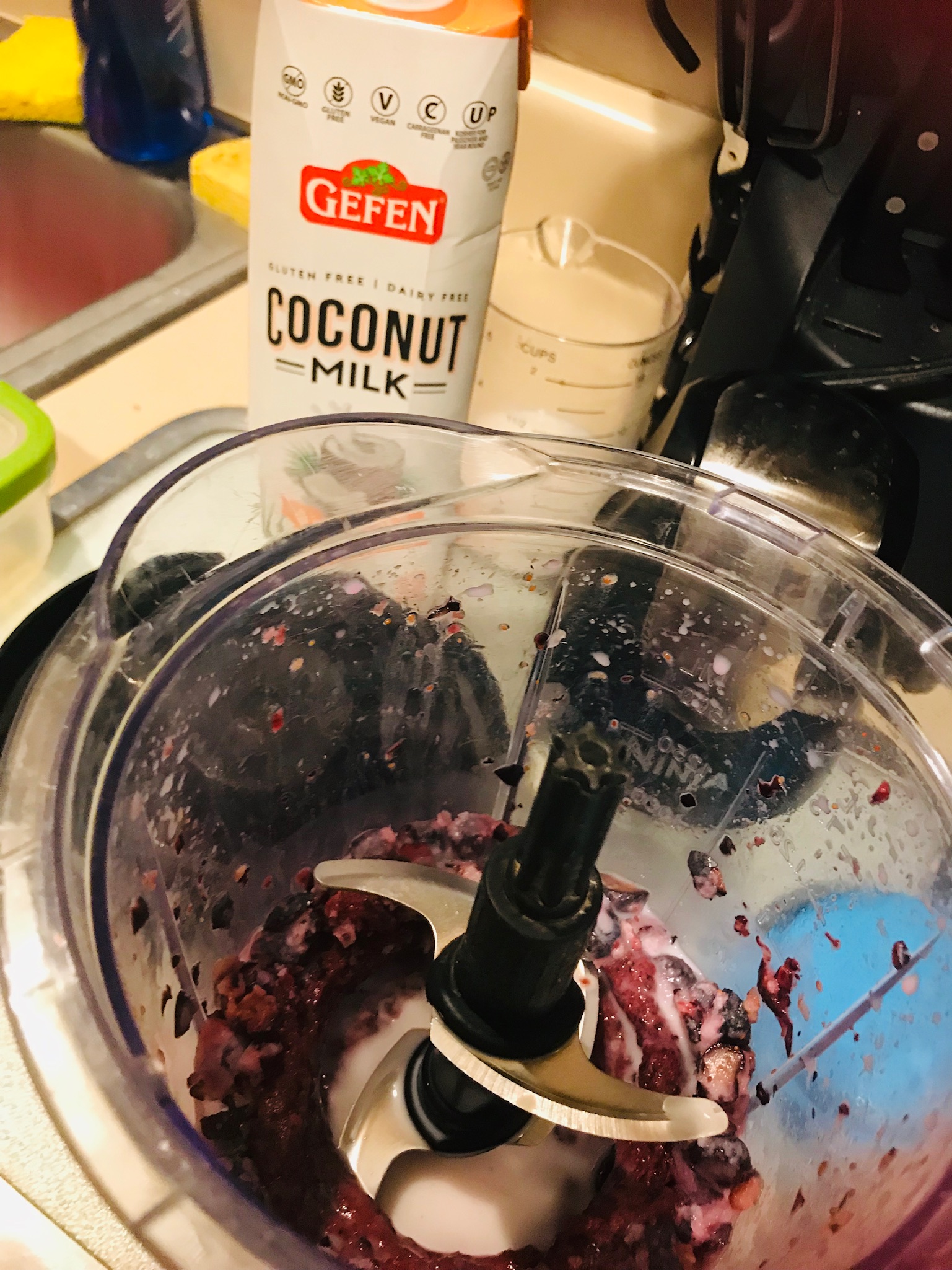 Gefen Foods sent me some of their coconut milk products to try. I was looking through the internet for ideas for coconut milk on this super hot summer day. I decided it was all more complicated than it needed to get with their shelf-stable Sweetened Coconut Milk. I took out the blueberries I had in the freezer (always ready for smoothies and baking) and made this delicious ice cream. It actually tastes more like a sorbet to me, but I can't technically call it a sorbet when it has milk in it. I'm sure this would be just as good with raspberries, blackberries, or any other fruit you enjoy. | |
